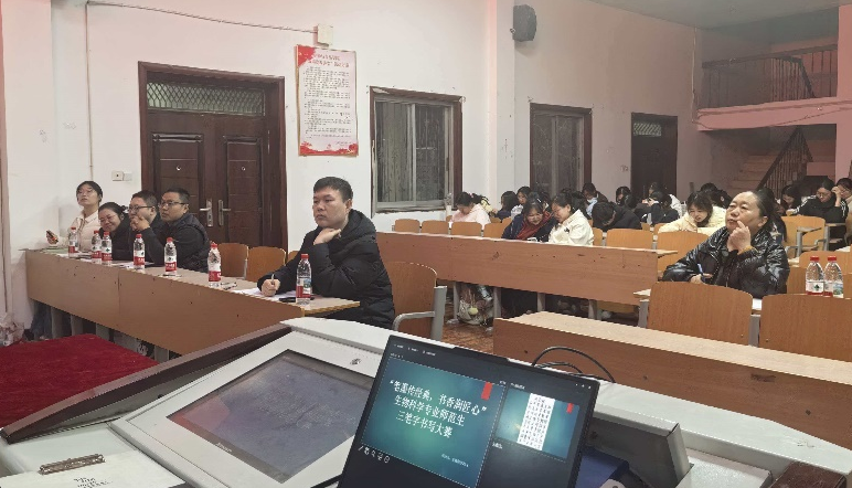 为弘扬中华优秀传统文化,提升师范生汉字书写能力,营造以文化人、以美育人的育人氛围,11月23日晚,由生物科学专业2025级2班承办、班主任陈冠华负责组织实施的“未来智慧名师”系列活动——“笔墨传经典,书香润匠心”三笔字书写比赛,在我院报告厅顺利举行。系主任郑爱珍出席并致辞,辅导员孟鑫明、班主任王志利、陈冠华、丁亚南、何兆华担任评委。