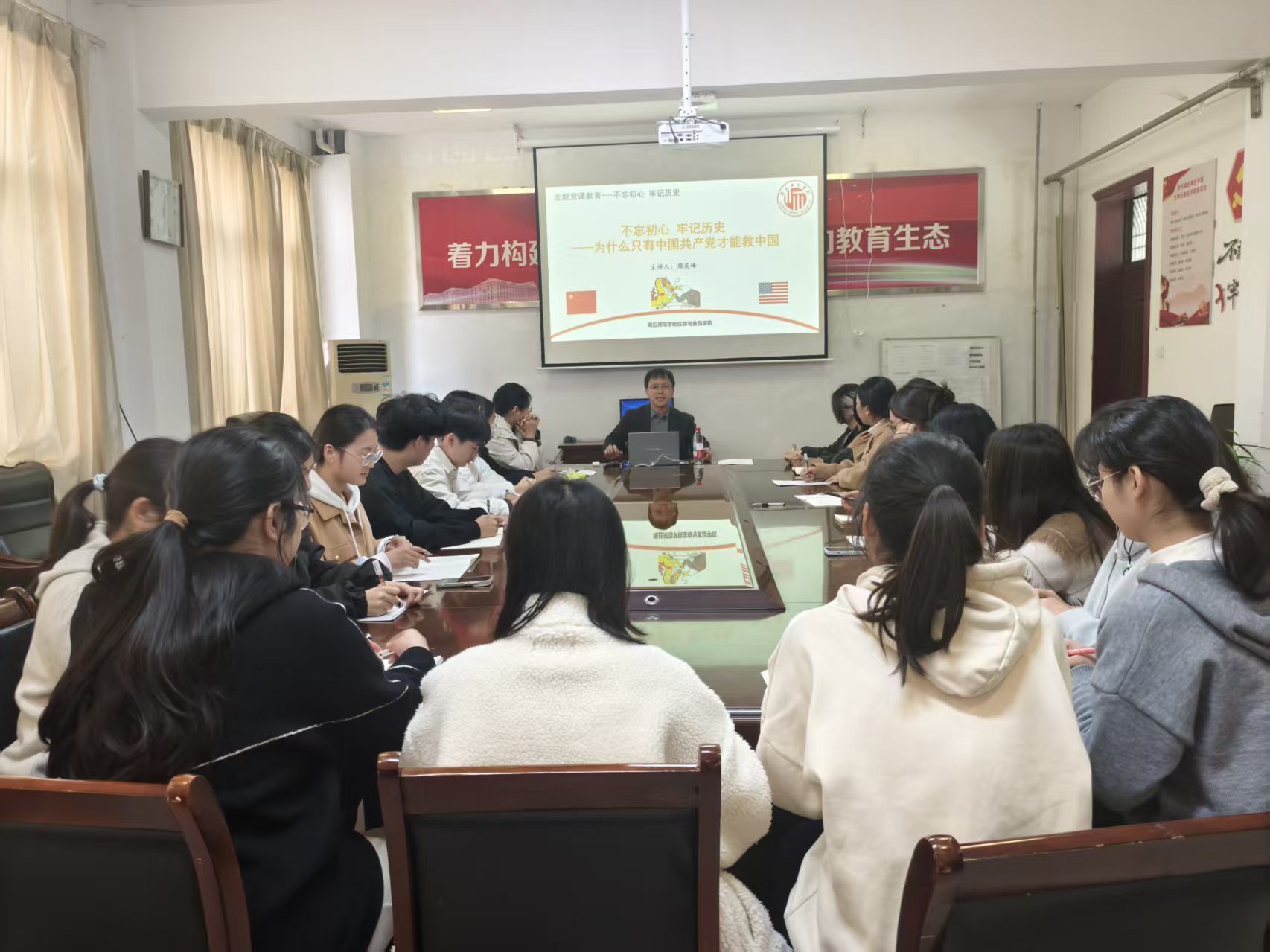 为进一步深化党史学习教育,激励入党积极分子坚定目标,勇担新时代新使命,生物与食品学院于10月29日组织开展了一场以“不忘初心,牢记历史”为主题的党课培训,本次党课由生物与食品学院院长周庆峰主讲,生物与食品学院入党积极分子参加此次培训。