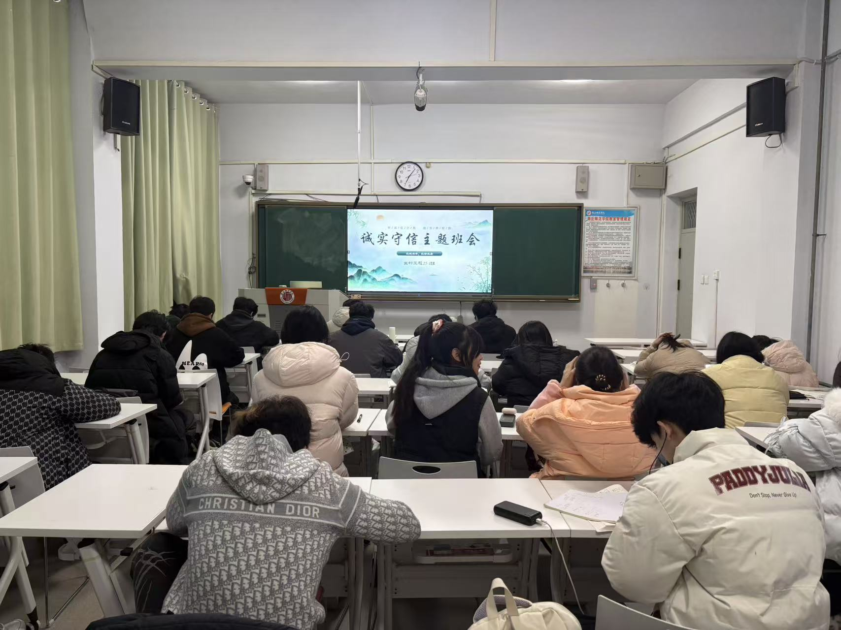 为深入推进学风建设,引导学生树立诚信意识、严肃考风考纪,营造公平公正的考试环境,12月25日—30日,学院各年级集中组织开展了“诚信考试”主题班会活动。