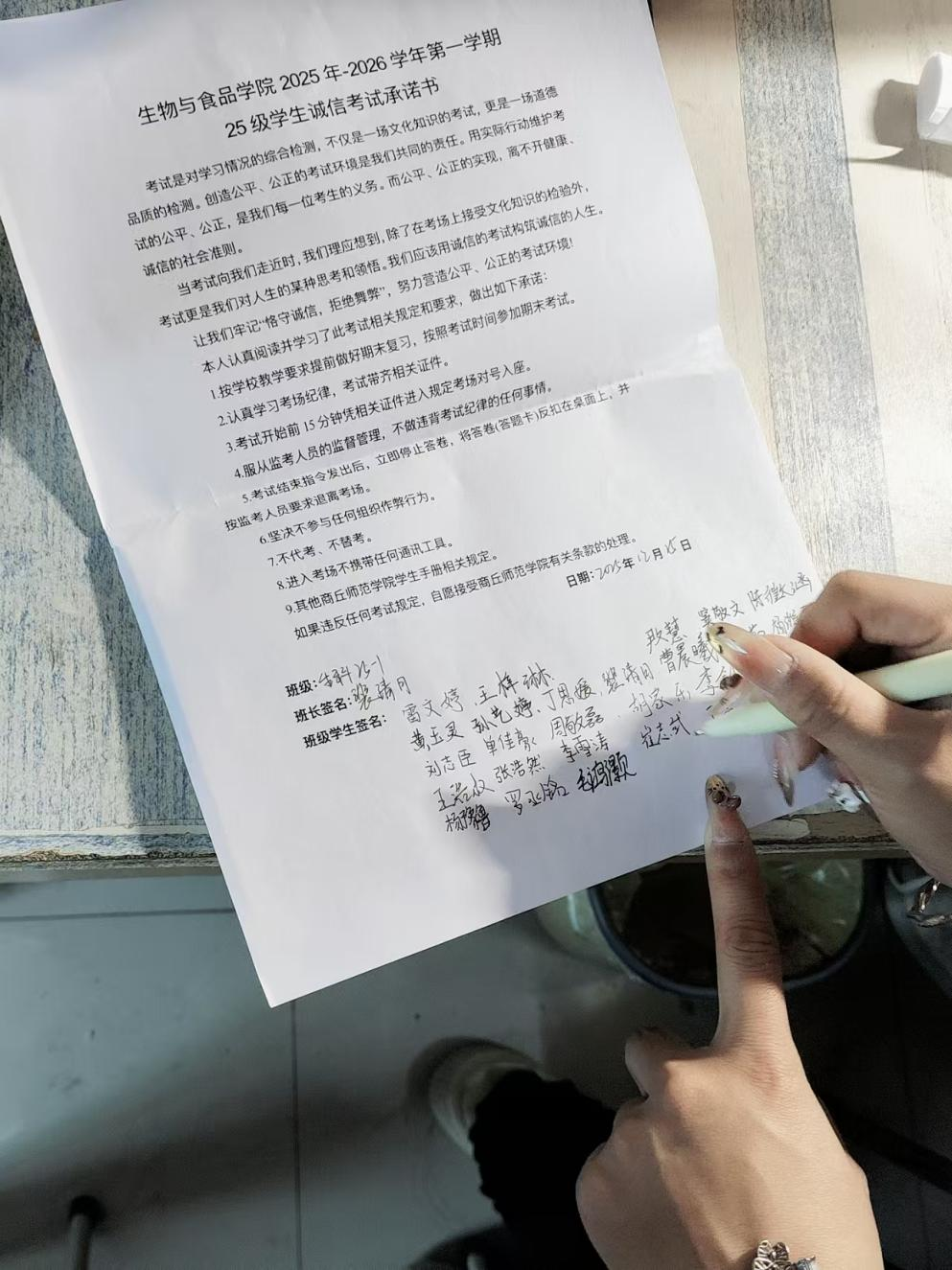 各班围绕“诚信应考,端正学风”的核心主题,结合班级实际,开展了形式多样、内容丰富的学习与交流活动。班会上,各班首先组织同学们认真学习了学校关于考试管理的各项规章制度,重点强调了考试违纪行为的认定与处理办法,使同学们深刻认识到诚信考试的重要性和作弊行为的严重后果。随后,通过案例分析、小组讨论、诚信宣言、签署诚信考试承诺书等形式,进一步引导同学们端正学习与考试态度,自觉抵制舞弊诱惑,筑牢诚信思想防线。部分班级还借此机会,邀请了学业优秀的同学分享复习备考经验,进行了积极的考前动员,鼓励大家以真实水平争取优异成绩,展现生物与食品学院学子良好的精神风貌。