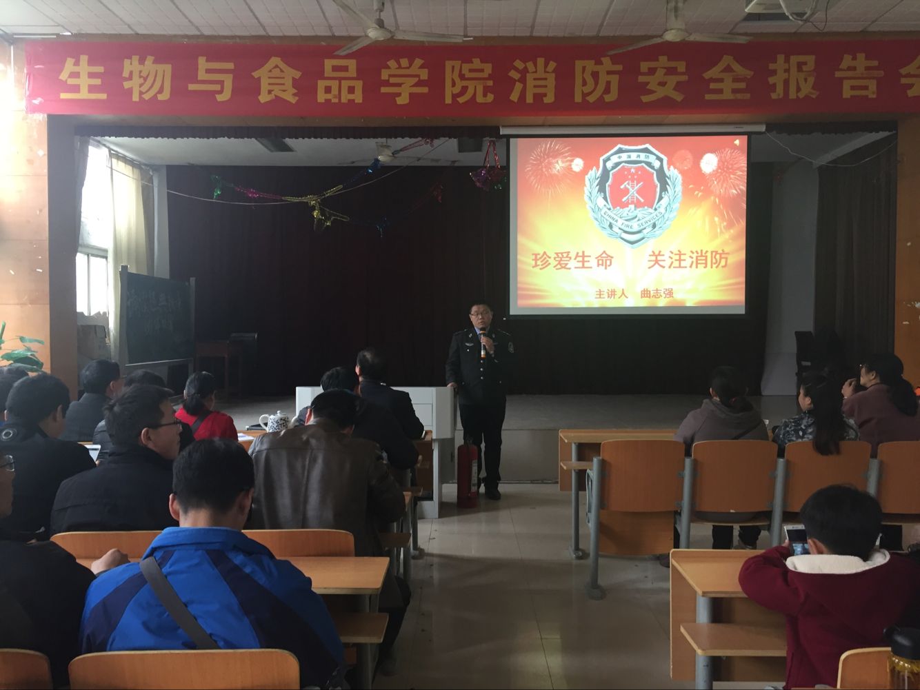 为了切实提高我校师生的消防安全意识,真正掌握消防安全知识,增强自救互救的能力。2017年3月31日,一场关于消防安全的报告会在商丘师范学院生物与食品学院报告厅内成功举行,生物与食品学院的各位领导老师以及同学们都积极参加了此次会议。
