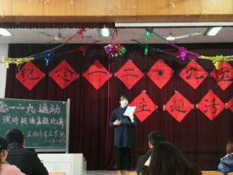 2016年12月九日中午一点,以纪念一二·九运动为主题的演讲暨朗诵比赛活动在生物与食品学院系报告厅顺利开展。莅临本次比赛的领导有体育学院团总支书记陈东鹏,生物与食品学院团总支书记时光,大四辅导员宋艳军,大二辅导员刘海滨,大一辅导员张美芸以及团总支学生会干部。参赛同学用他们激昂的语言和声情并茂的动作表达了他们的爱国的精神以及对革命先驱的崇敬之情。本次比赛不仅让同学们对“一二九”运动这一光辉的历史有了深刻的了解与认识,增强了大学生的社会责任感和爱国之情,同时也提供了一个知识文化的平台,使同学们碰撞出智慧的火花,放飞出青春的激情。