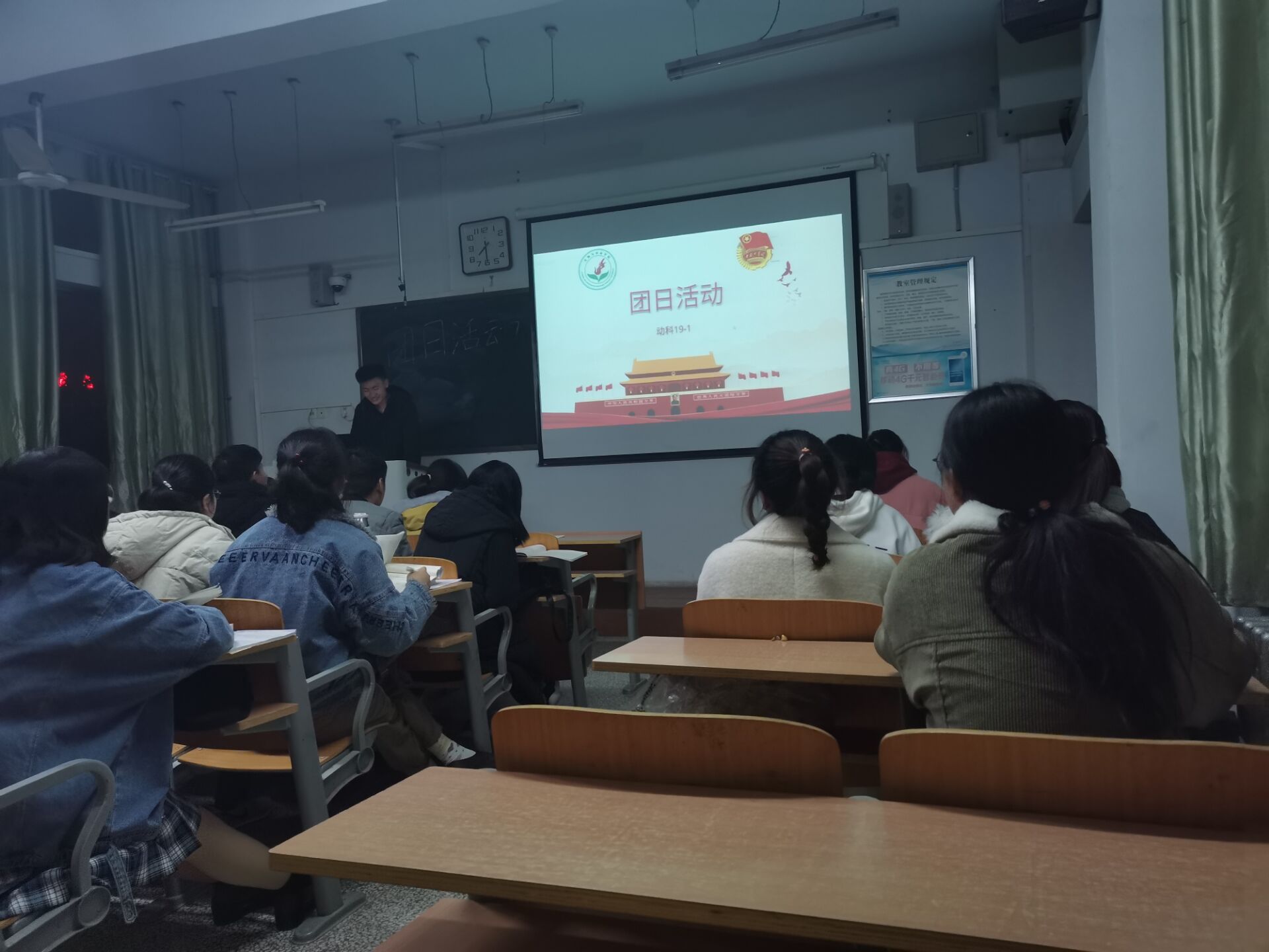 为推进“观时代变化 感祖国辉煌” 主题教育活动,动物科学19-1班学生于11月28日晚在一号楼510教室开展相关主题团日活动。