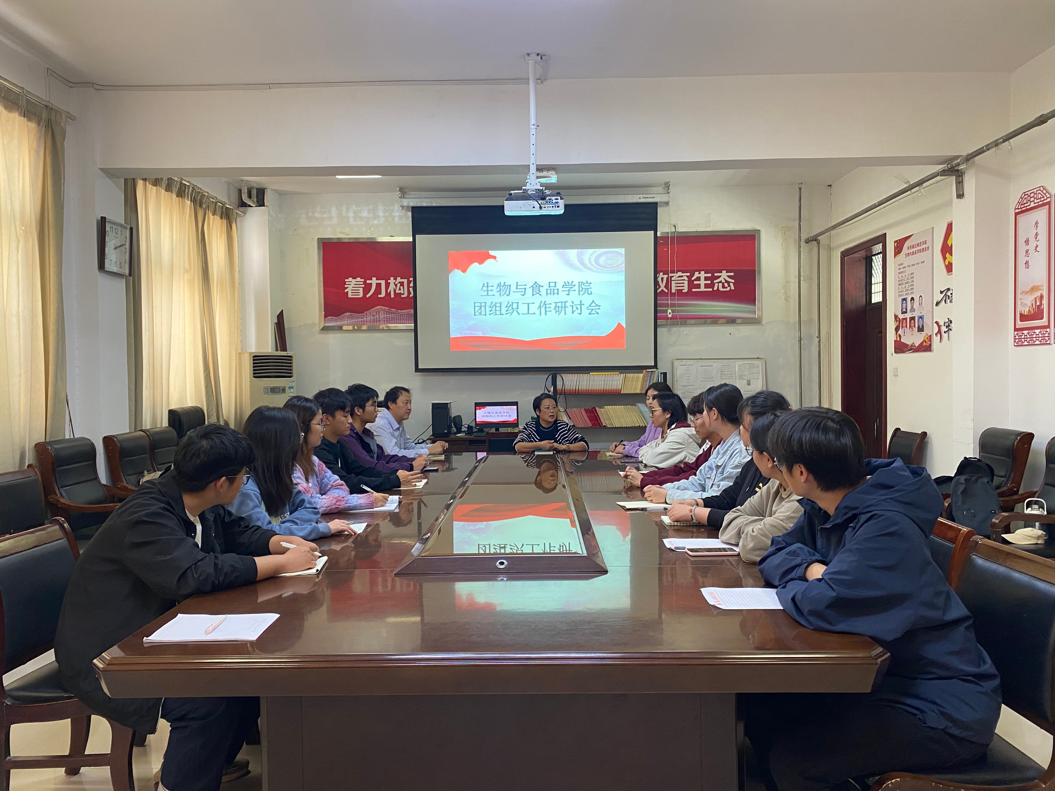 为了促进生物与食品学院团组织工作的顺利进行,商丘师范学院生物与食品学院于10月30日12点30分在我院会议室101召开团组织工作研讨会。此次会议由我院团委书记陈东鹏主持,我院党委副书记丁波莉、学工办主任张美芸、2021级辅导员丁蓓以及2021级和2022级团委学生会主席团成员出席本次会议。