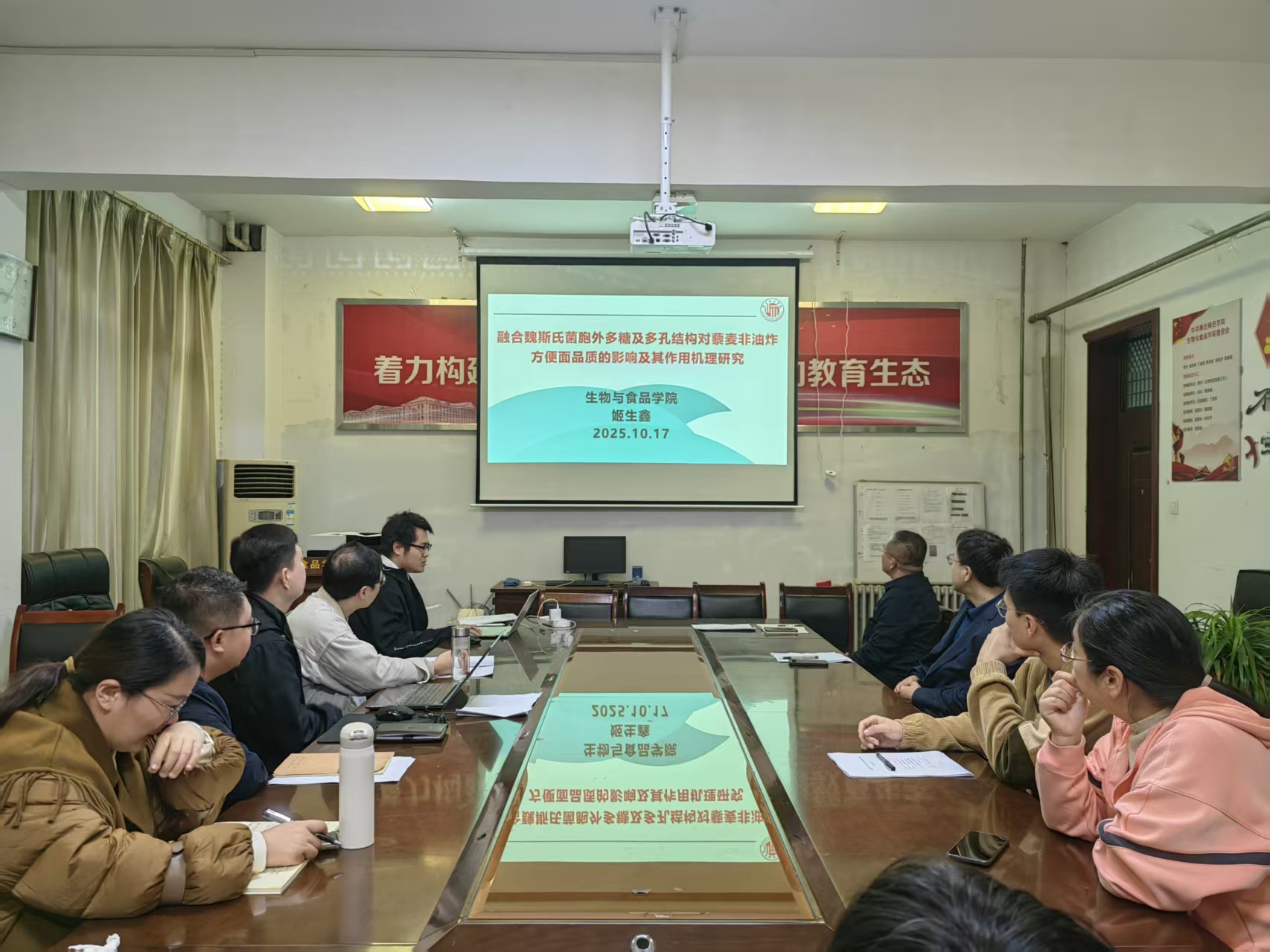 为了推动学院的科研进展,使新进博士尽快启动科学研究,2025年10月17日,生物与食品学院在学院会议室组织开展了新进博士科研启动费项目答辩工作,对本学院2025年下半年新进博士人员:陈啸天、宋相宇、王志利、何兆华、姬生鑫、张娜威、丁亚南、牛春阳和朱文俊9位博士的《博士人才科研启动经费项目申请书》进行了审核和推荐上报。答辩小组成员老师包括周庆峰教授、韩进诚教授、韩霜教授等老师。