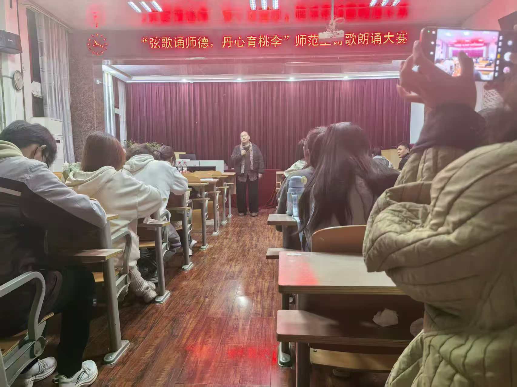 为顺应时代发展,弘扬高尚师德师风,抒发尊师重教情怀,11月11日晚,生物科学专业在我院报告厅举办了“未来智慧名师”系列活动之“弦歌颂师德,丹心育桃李”诗歌朗诵比赛。学院党委副书记李杰、丁波莉应邀出席,辅导员孟鑫明、班主任王志利、陈冠华、丁亚南和班助吕嘉婷担任评委。