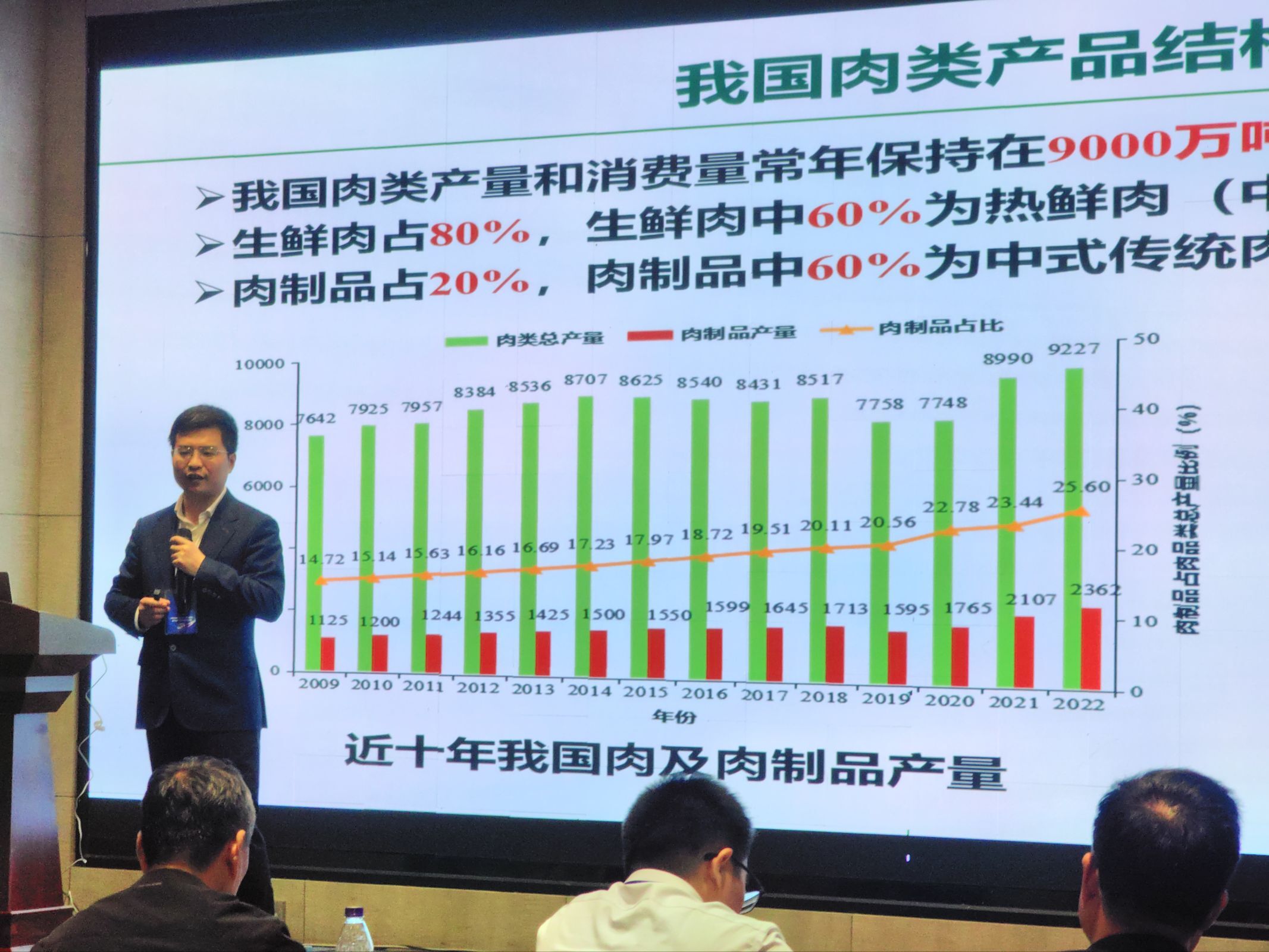 中国农业科学院农产品加工研究所王振宇研究员以《商丘肉类加工产业现状与发展路径选择》为题,精准把脉商丘本地肉类加工产业的优势与挑战,从科技创新、产业链升级、品牌建设等多个维度,为地方特色产业的转型升级提出了极具前瞻性和可操作性的发展路径。他的报告紧密结合其团队在传统肉制品工业化、营养肉制品创制方面的丰硕研究成果,为校地合作、产教融合提供了新的思路。