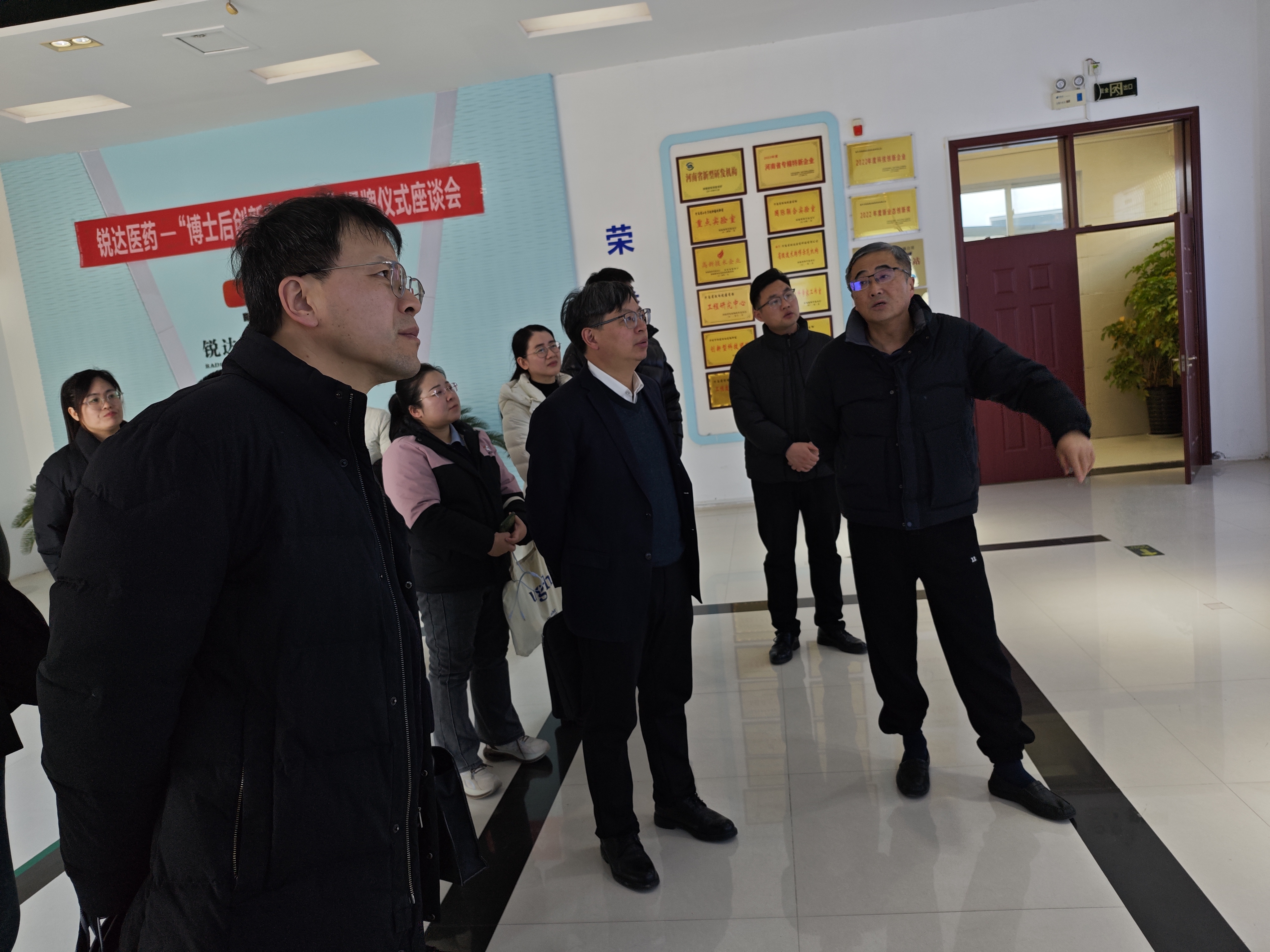 为深化校企产学研协同合作,赋能我校生物与医药硕士学位授权点高质量建设,1月7日,副校长刘澜涛带领科学技术处处长周庆峰、生物与食品学院党委书记李杰、副院长韩进诚及部分骨干教师一行,赴归国博士徐学军创办的河南省锐达医药科技有限公司考察交流,实地调研企业在新药创制、生物产品研发及科研技术服务等领域的创新成果与发展成效。