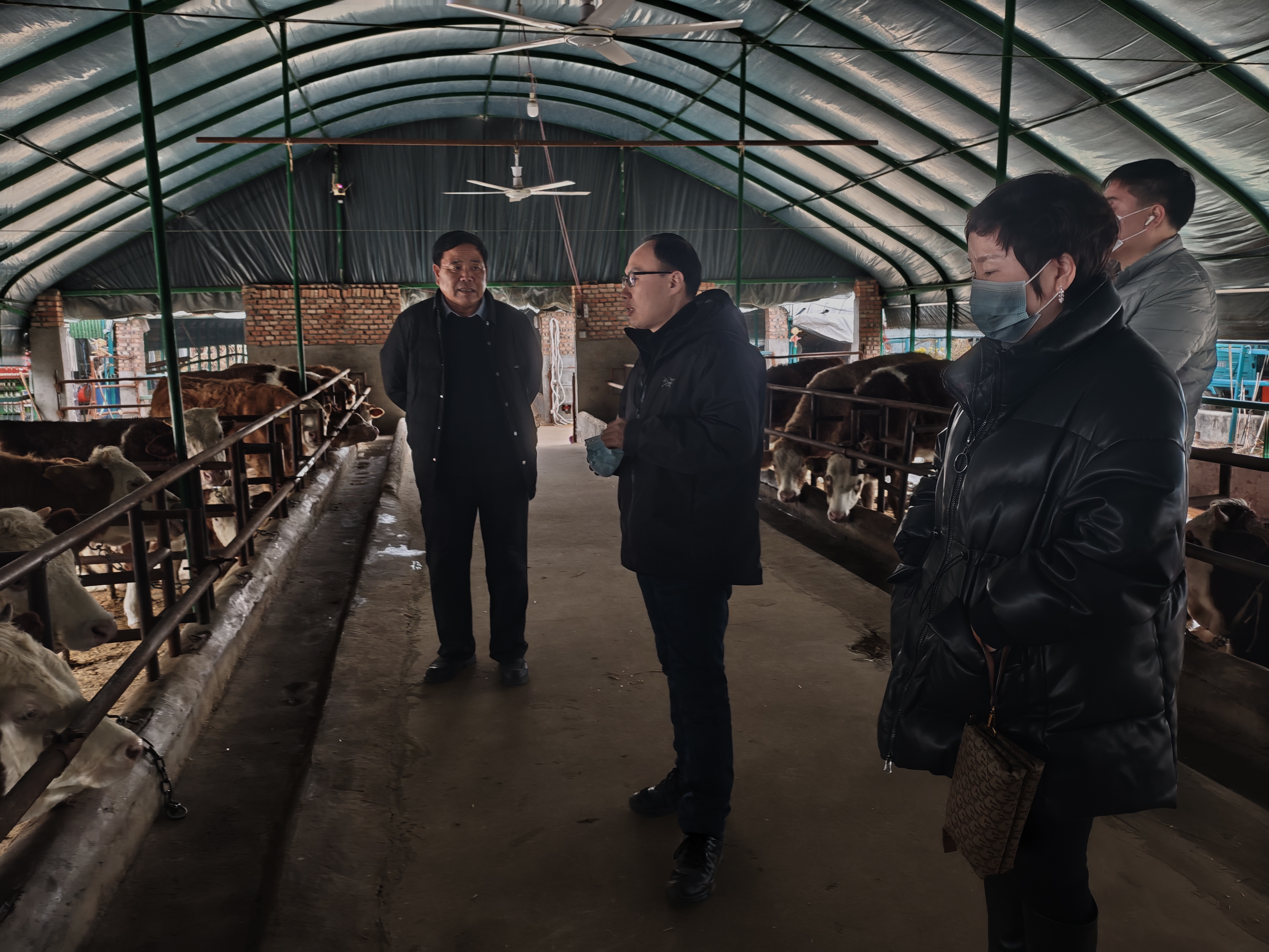 一行首先来到养殖牛场,实地查看了养殖牛的情况,详细询问了养殖规模、收益等情况。在养殖牛场,帮扶团成员施传信老师就牛品种选择、牛舍建设、牛常见病防控、牛场管理等进行现场指导,详细解答了养殖户提出的具体问题。