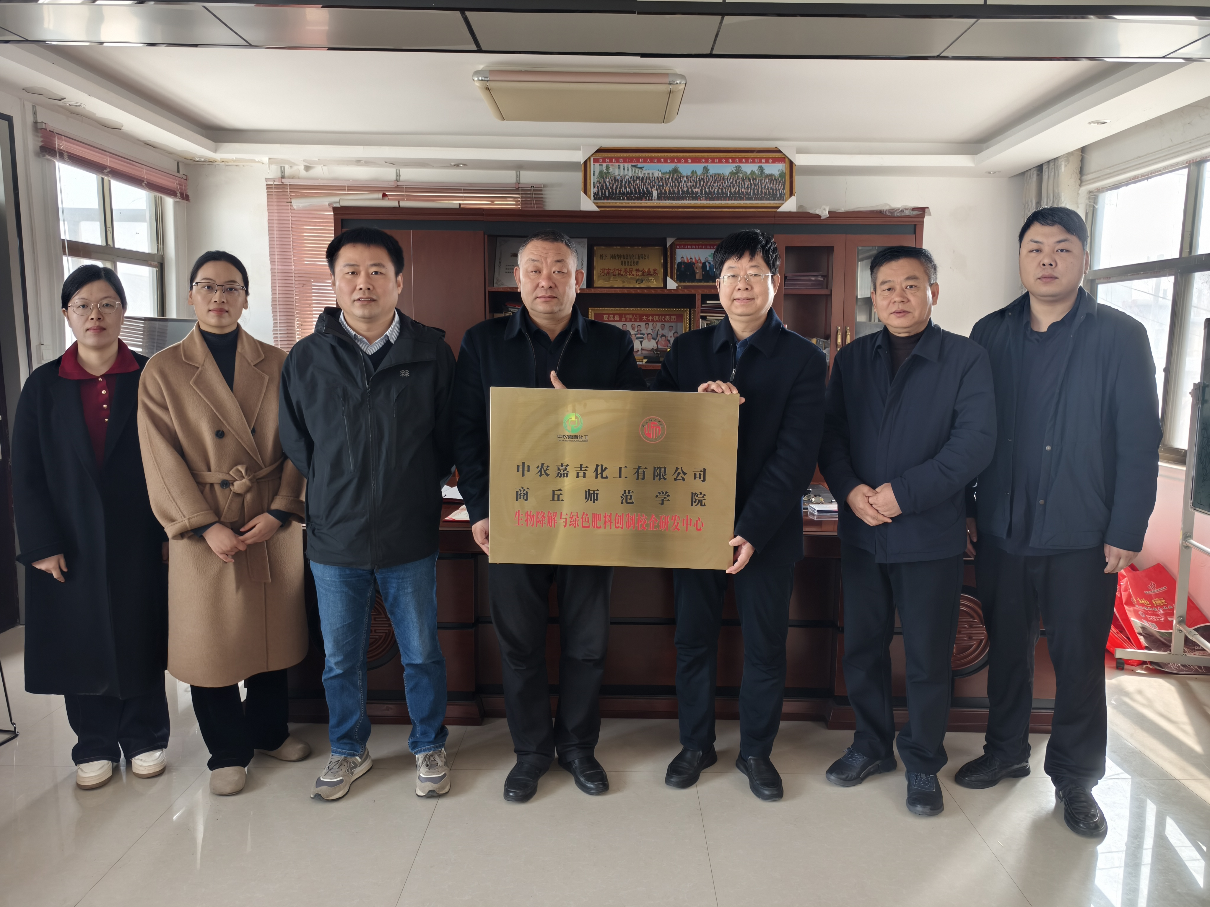 3月20日,我校与夏邑中农嘉吉化工科技有限公司共同举行“生物降解与绿色肥料创制校企研发中心”签约授牌仪式。我校校地合作与服务中心副主任杨广礼、生物与食品学院副院长宋兆齐等相关同志以及中农嘉吉化工科技有限公司总经理刘召功,田华威、刘康、刘琳等出席活动。