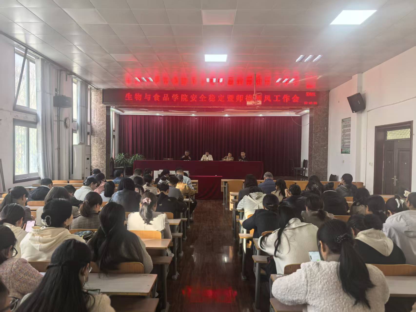 3月27日下午,生物与食品学院在学院报告厅召开安全稳定暨师德师风工作会。会议由学院党委书记李杰主持,领导班子及全体教职工参会。