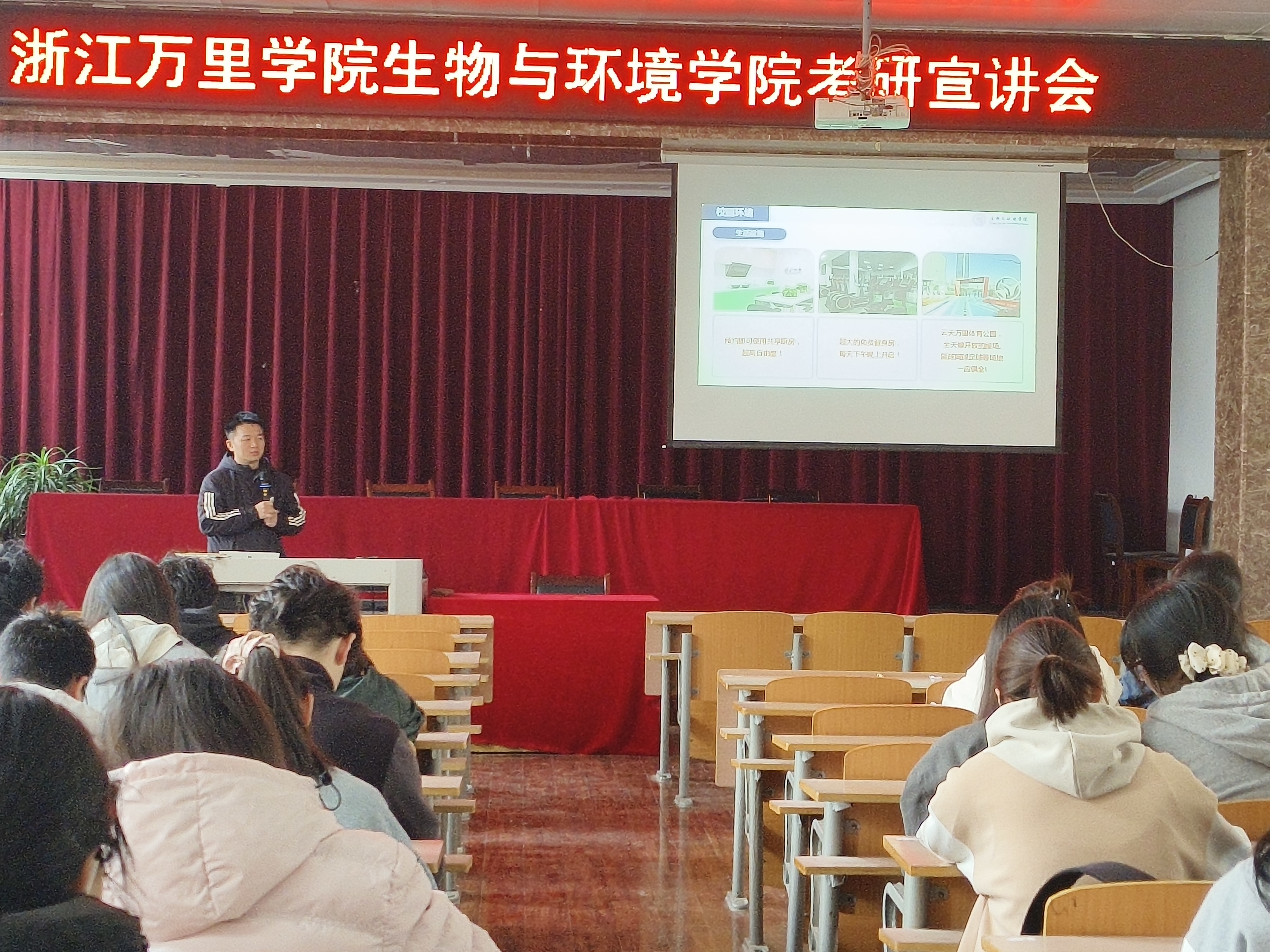 交流会后,浙江万里学院生物与环境学院在我院报告厅举行考研调剂宣讲会。本次宣讲会由浙江万里学院生物与环境学院研究生招生联络员徐涛老师主讲,我院近90名考研学生参会。