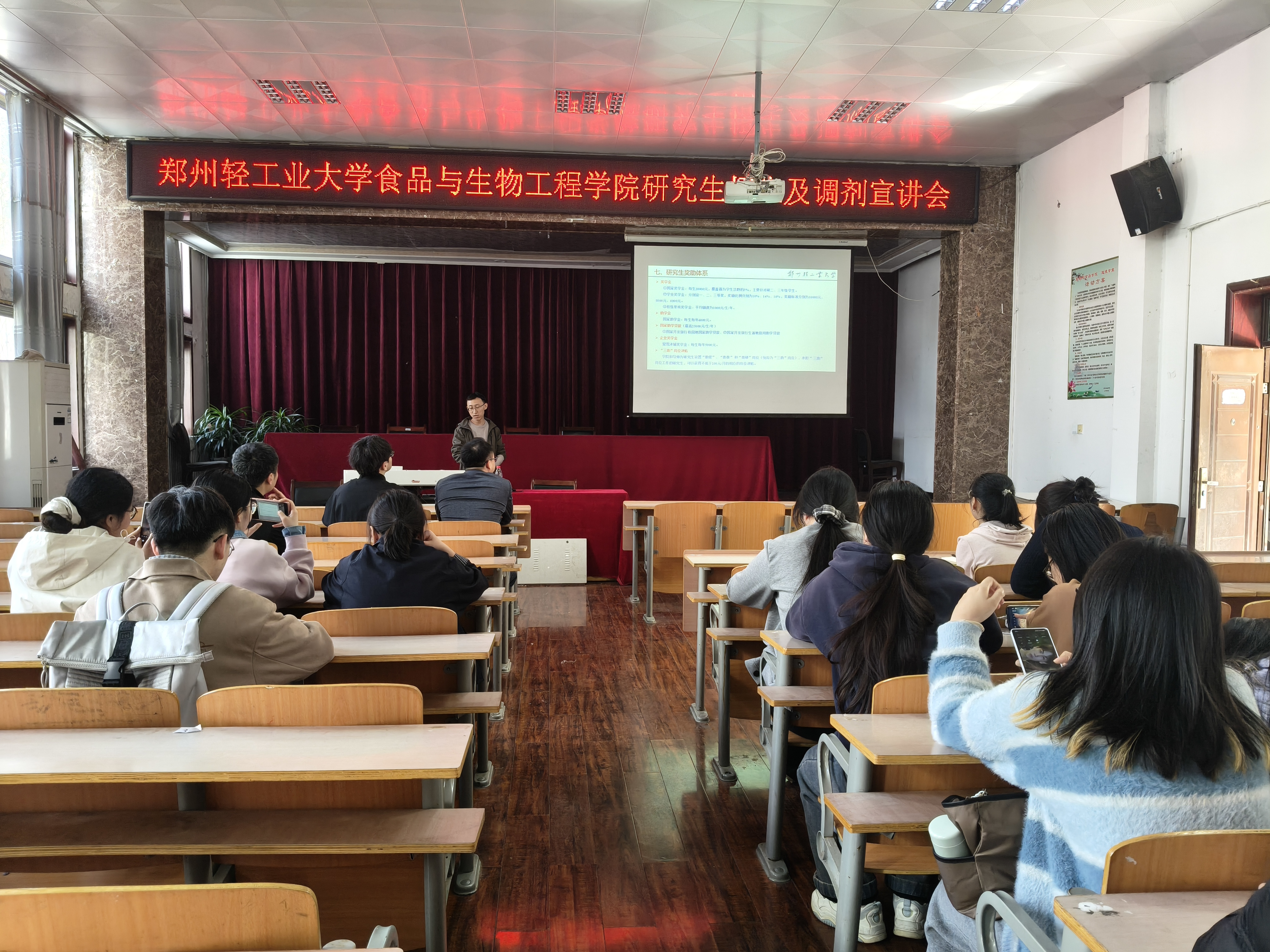 为更好的引导和帮助学生考研调剂,4月1日,郑州轻工业大学食品与工程学院来我院开展考研调剂宣讲,本次宣讲会由李皓老师主持,我院部分教师和考研学生参加了此次宣讲会。