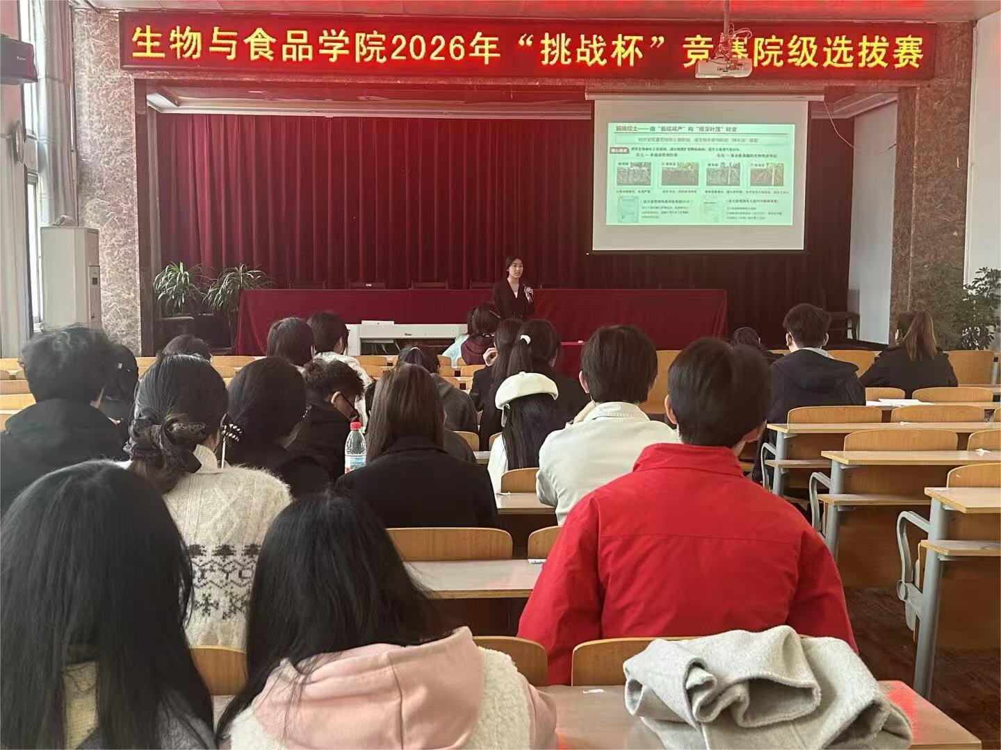 为激发学生创新精神与创业意识,全面提升大学生创新创业实践能力,结合学校团委“2026年挑战杯大学生创业计划竞赛”安排,生物与食品学院团委于3月25日举办“2026年‘挑战杯’大学生创业计划竞赛”院级选拔赛。