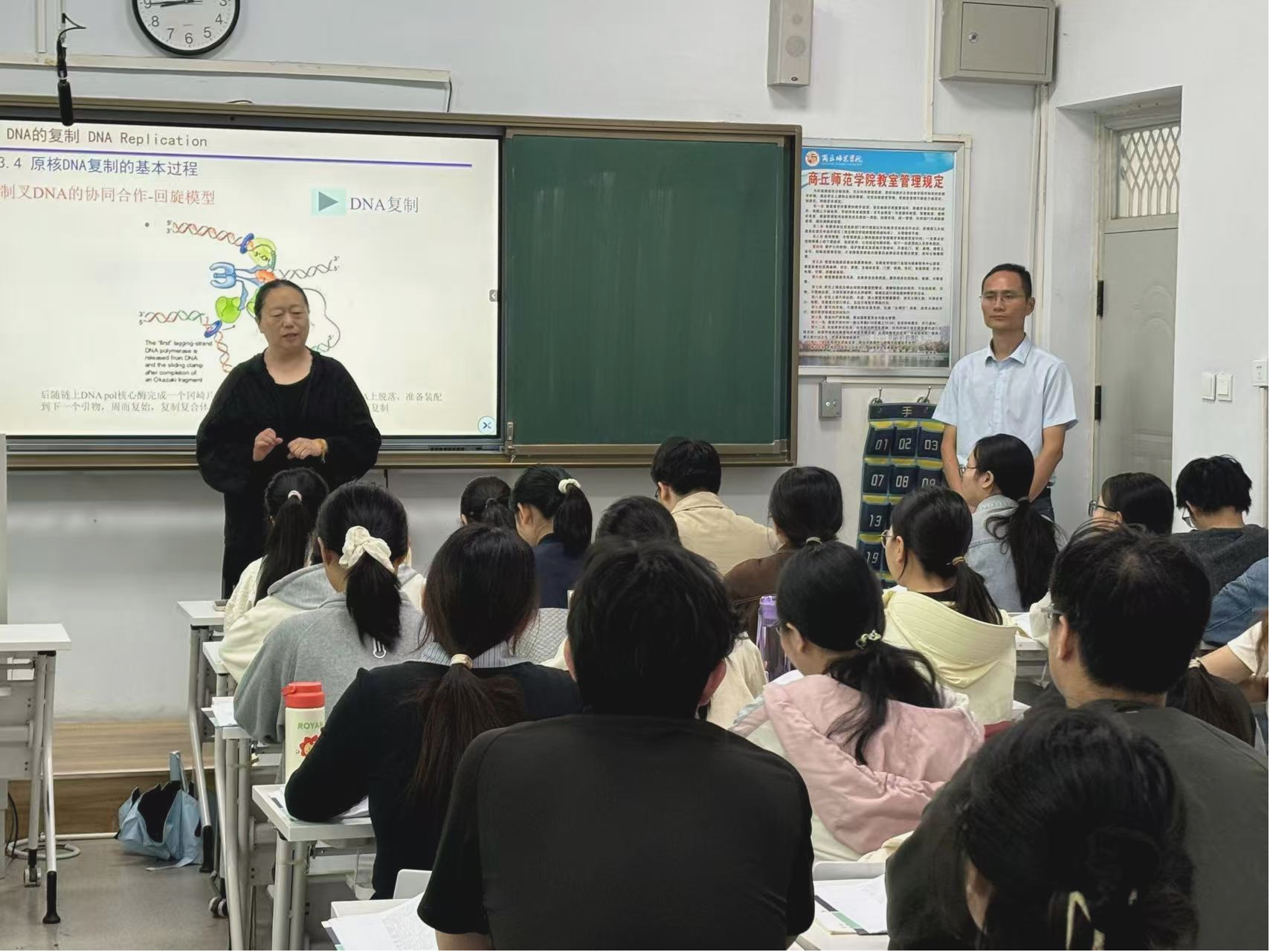 2025年9月26日上午,生物与食品学院生物科学专业张庆琛老师主讲的《分子生物学A》公开课在睢阳校区1号教学楼406教室举行。该课程是生物科学专业必修课,生物科学系主任郑爱珍、同行教师韩霜、陈冠华等老师进行了观摩指导。