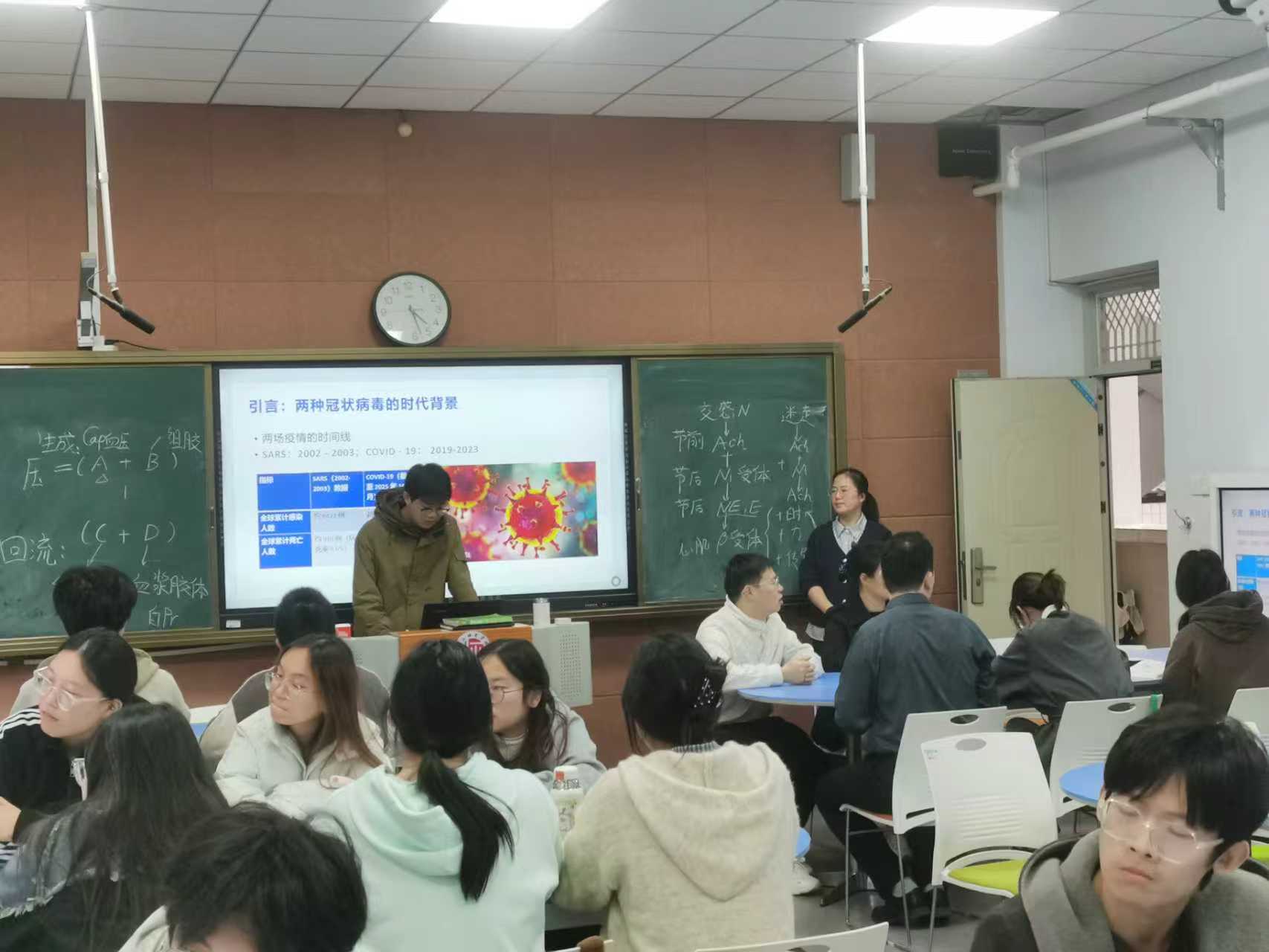 本次公开课聚焦《家畜生理学》第四章“呼吸系统生理”,以“线上预习 + 案例导入 + 小组探究 + 理论串联 + 闭环巩固”的创新范式展开。课前,学生借助学习通平台自主观看教学视频,以小组为单位认领讨论主题,通过查阅教材、文献及拓展资料精心制作汇报PPT,完成前置性学习积累。课堂伊始,席丽老师以大二学生亲身经历的新冠肺炎疫情为切入点,通过播放抗疫十大英雄人物的先进事迹视频,直观呈现社会各界众志成城、共筑防线的精神力量,引发学生情感共鸣与思考。随后,各小组围绕 “SARS非典肺炎与COVID-19新冠肺炎的差异” 展开汇报与讨论,席丽老师针对性点评,从病原学特征、流行特点、致病力强弱、防控难度等维度进行系统总结,让学生深刻认识到呼吸系统结构与功能对生命活动的关键作用,同时强化了“任何组织细胞功能的实现都依赖其正常结构基础”这一贯穿课程的核心理念。