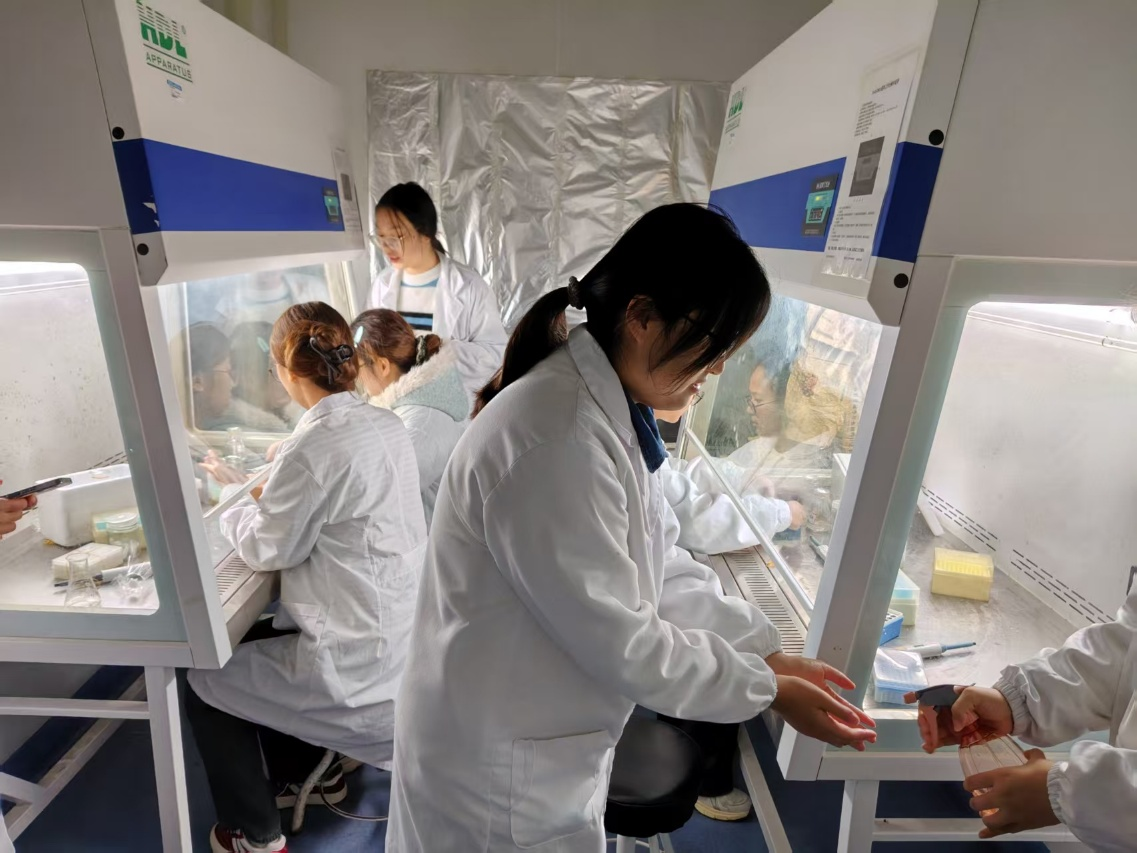 实验采用分组轮番操作模式,将大组分成若干小组,每个学生都承担相应的任务:分装、离心、CaCl₂处理、混匀、吸打等。组内成员分工明确又相互配合,轮换过程中每位同学都能全程参与核心操作,充分接触实验全流程。这种方式既保障了实验效率,又让每个人都获得均等的实操锻炼机会,有效提升了动手能力与协作意识。