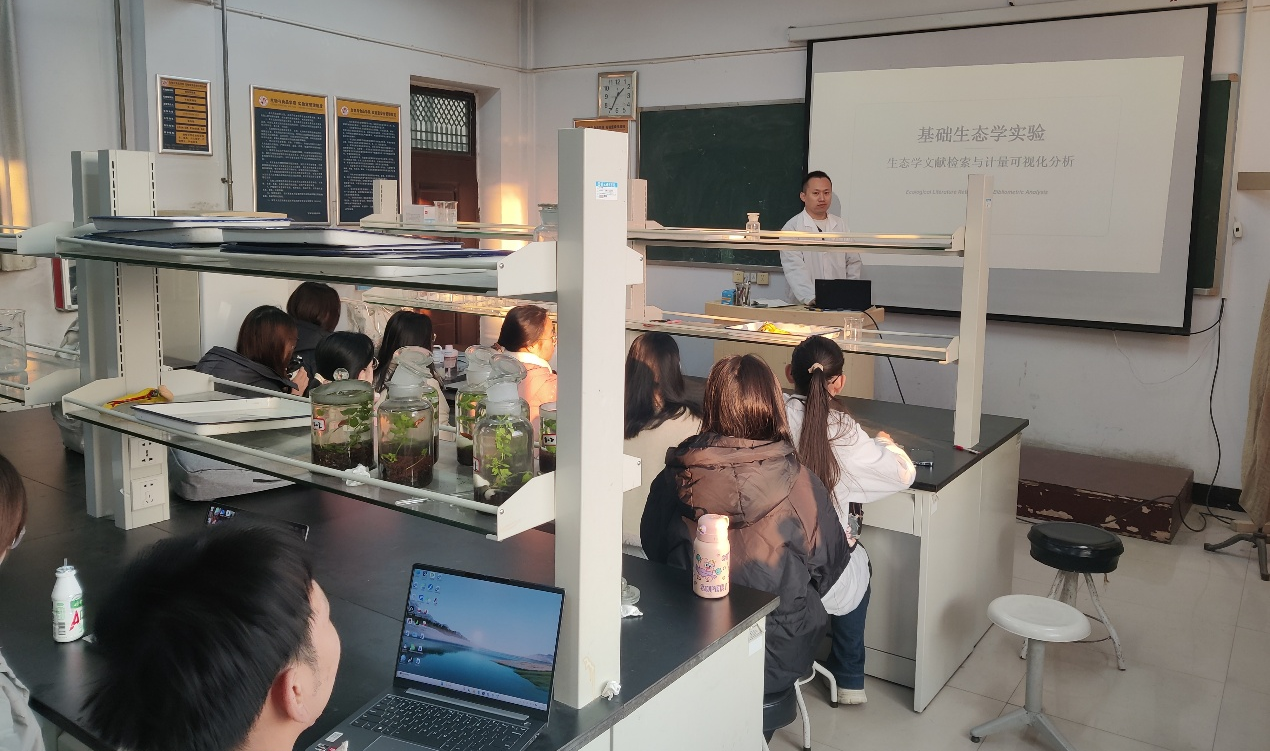 2025年12月5日上午,生物与食品学院石贤萌博士在睢阳校区生物楼404教室,进行了《基础生态学实验》公开课教学观摩活动。生物科学系系主任郑爱珍、青年教师黄杰博士、钟华明博士等教师莅临现场观摩指导。