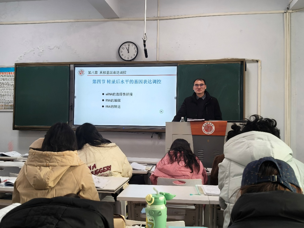 12月18日上午,生物与食品学院生物工程专业陈庆彬老师在1号楼407教室讲授《分子生物学》公开课,生物工程系主任邓丹丹及同行教师李微、陈啸天、刘梦洁等参加了此次公开课的观摩与指导。