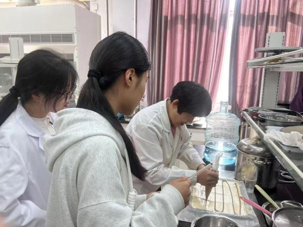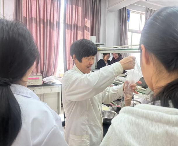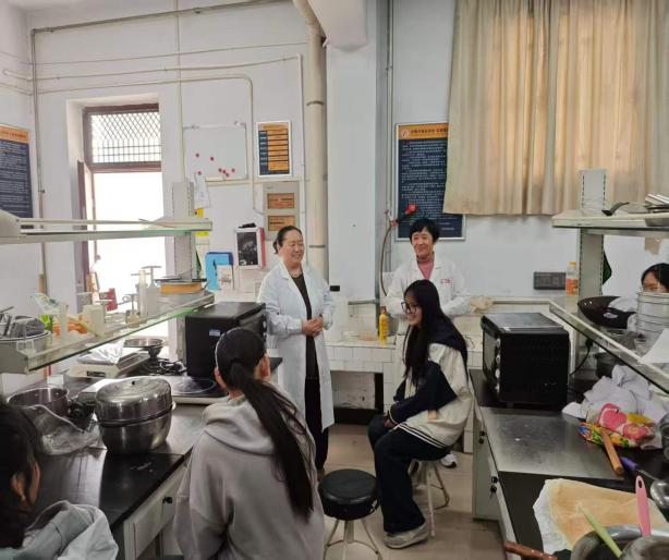 为了交流教学经验,提升人才培养质量,2026年3月28日下午14:30-15:20,生物与食品学院的王玉玲老师在睢阳校区科技楼210实验室给生物科学专业2023级学生上了一节《焙烤工艺技术》公开课,同行教师郑爱珍、康洁、邢小龙等老师进行了观摩指导。